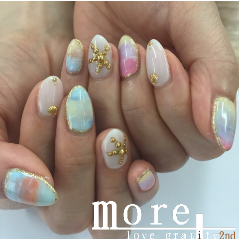 タイダイとストーン敷き詰めで涼しげだけど豪華な夏デザイン^ ^