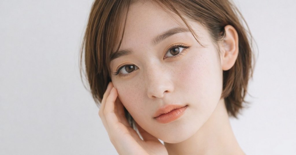 エラが張っているベース顔さんは、顔の輪郭がシャープに見えがちです。顔全体の印象を柔らかく見せ、エラ張りをカバーするためには、「緩やかなアーチ眉」が最適です。眉山にしっかりとした丸みを持たせ、眉尻を長めに描くことで、顔の角ばった印象が和らぎ、女性らしい優しい雰囲気を演出できます。眉頭は濃くしすぎず、自然なグラデーションを意識しましょう。